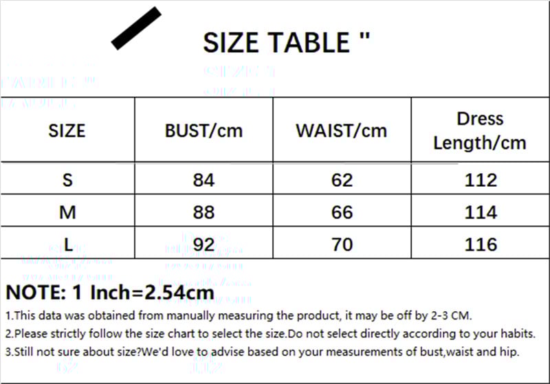 | SIZE | BUST-inch | WAIST-inch | Dress Length-inch |
